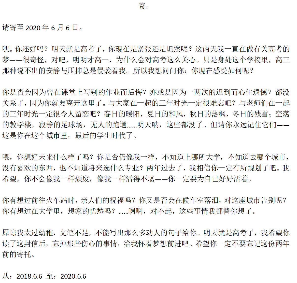 (2026.2.25 注:这里指的是我2018年6月6日的一篇周记,也记载在日记本上(我的日记本是高中周记作业本接续的),见下图。不过当时一定想不到,我这届高考延期了一个月哈哈。)